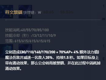 3、W技能是造成伤害并减速,如果敌人身上有涌动效果那么减速就变成禁锢。