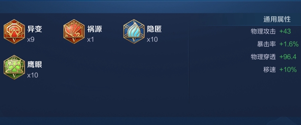3、第一套铭文:9异变+1祸源、10隐匿、10鹰眼