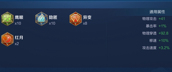 4、第二套铭文搭配:8异变+2红月、10隐匿、10鹰眼