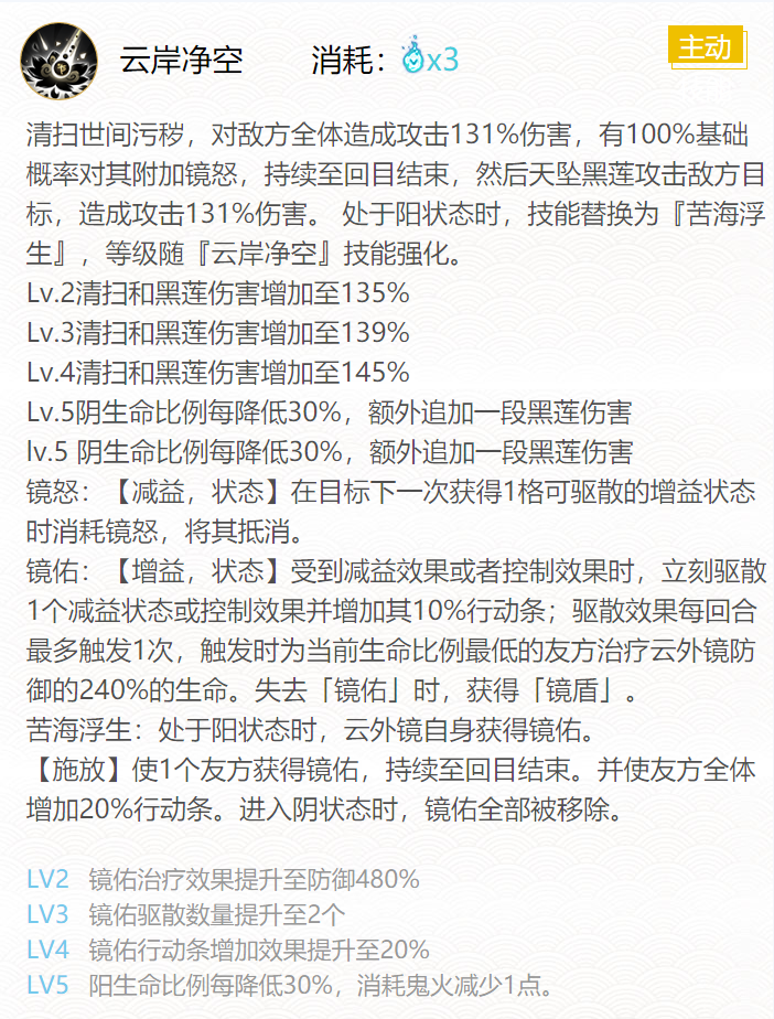 云外镜搭配招财走辅助路线,堆防御属性,自身速度快,残血免火,搭配招财在后期可以起到打火的关键作用。