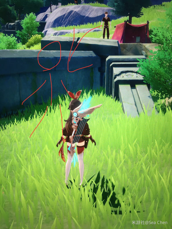 5、4个风球打完之后出现风圈,飞回去,接着找第二个日晷,用相同的方法打风球。