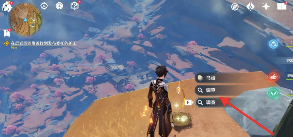 2、在最高峰可以看到鸟巢,点击调查就能获得了。