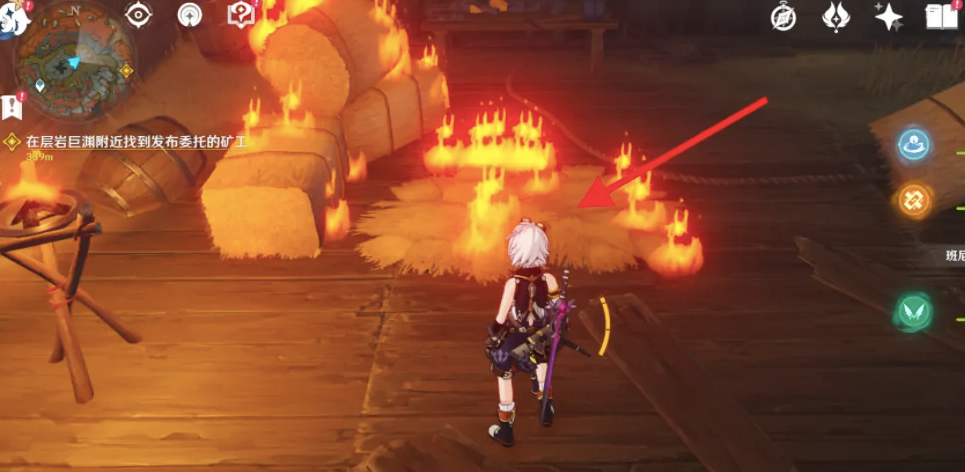 3、在屋子里的草堆点燃烧掉后,可以点击调查得到。