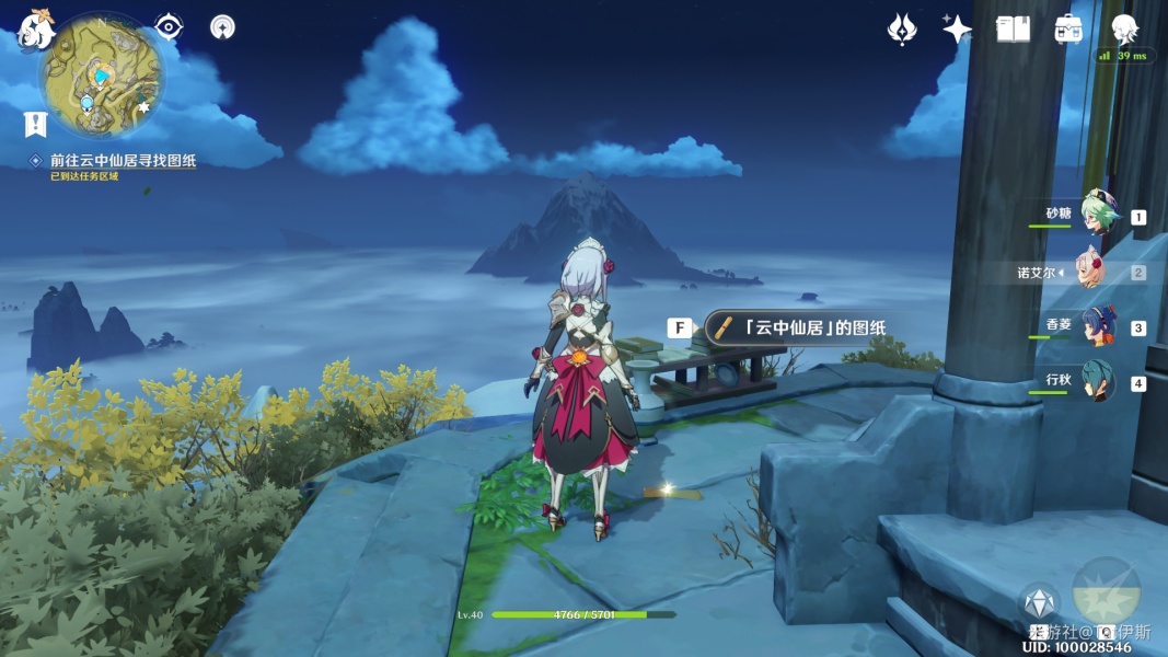 2、接取任务之后,要求去最高的仙人居所下图2的位置拿图纸(需要已经激活三个鸟开启过仙人故居)