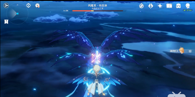 3、任务提示你可以打它脖子上的残血时,不要用温迪射,直接爬到它身上去,用雷泽或者诺艾尔砍它那个紫色残血光圈。