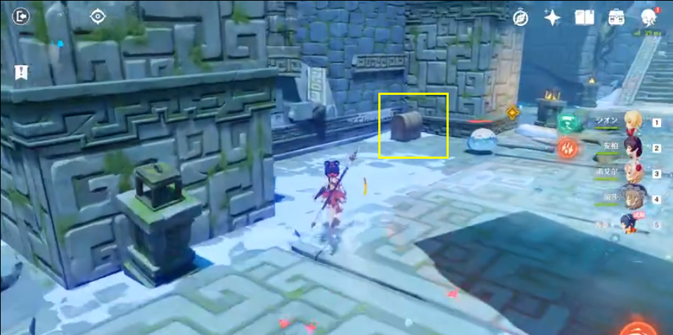 4、清完怪之后,我们先把这个宝箱拿了,然后用火元素把这块冰消了,再顺着箭头爬上去。