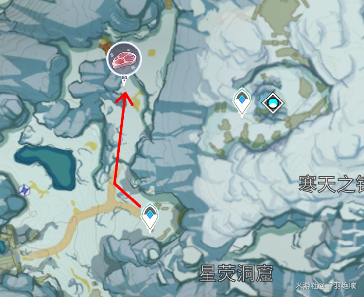 2、第二条路线是从星荧洞窟的传送点出发,有一只猪,可以得到2块肉。