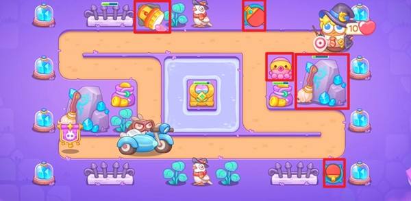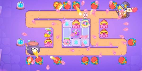 4、具体阵型如下图所示,中间全部放上章鱼,章鱼攻击范围很大,炮塔利用率高。