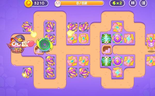 1、开局在右下建立一个蝴蝶结,蝴蝶结可以旋转攻击,攻击范围大,可以有效的清理周边道具。