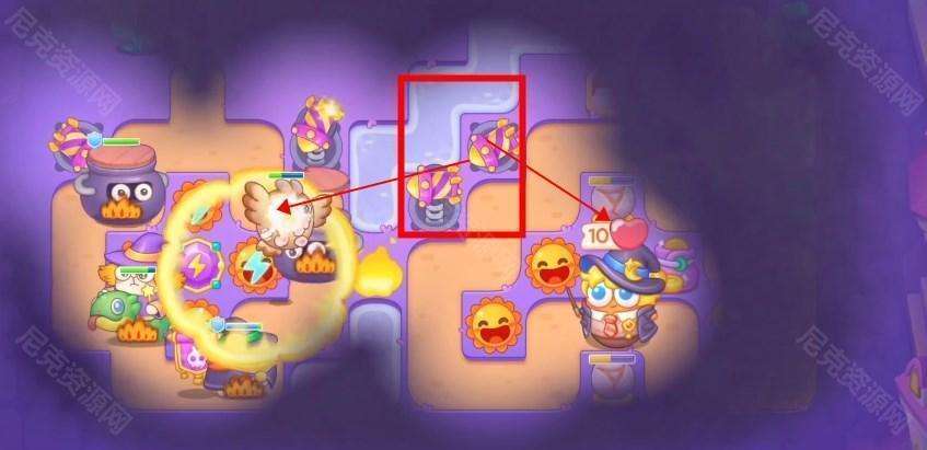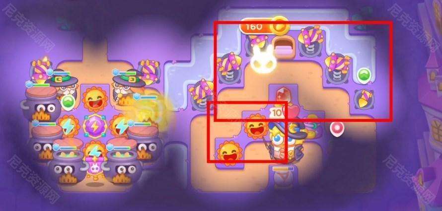 2、道具清理掉以后继续建立太阳花,然后在上方建立导弹,使用导弹攻击上方的道具破开迷雾。