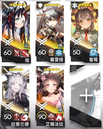 煌(精二60级)、拉普兰德(精二60级)、塞雷娅(精二60级)、艾雅法拉(精二90级)、蜜莓(精二50级)