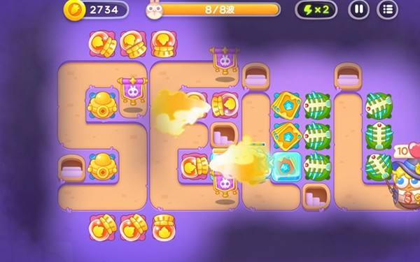 4、有金币现在就继续建立炮塔,左边建立喷火瓶,右边建立鱼骨。