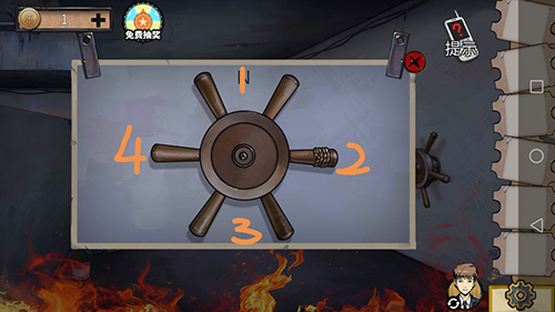 7、最后我们在墙上旋转船舵即可发现线索4。