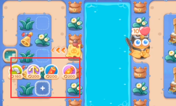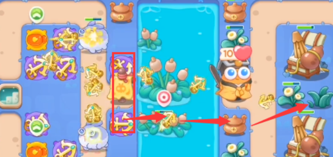 4、池塘出现道具,锁定清理,会溅射到右边的道具。