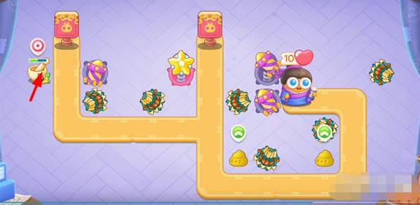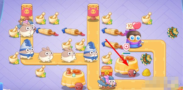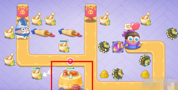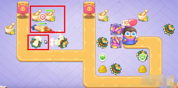 3、宝箱是便便塔防,用来减速,之后在清理旁边桌子,有钱就升级塔防。