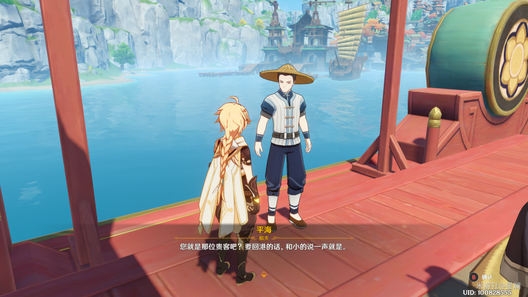1、首先来到璃月的船头,找到NPC落霞接取任务。注意事项,港口一般晚上过去比较好。