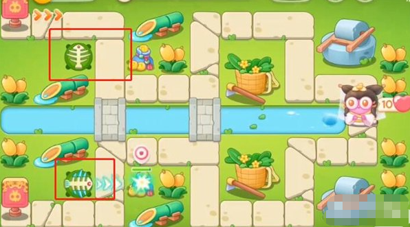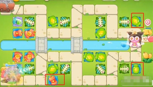 7、第七波左下方一个爆竹满级,右下一个鱼骨头。