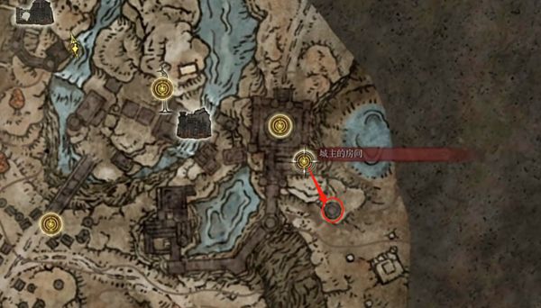 1、第一步玩家先来到城主的房间赐福点位置出,从传送点出来后继续前进。