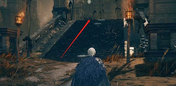 2、来到城内顺着楼梯往上面走,然后左拐可以看到还有一个楼梯。