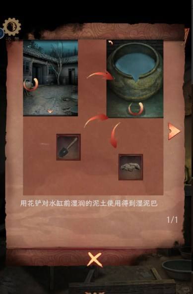 10、点击新场景的左下方获得道具木盆,回到院子里打水,把水倒进浴缸获得密码7109,在抽屉输入密码后打开锁获得道具骰子。