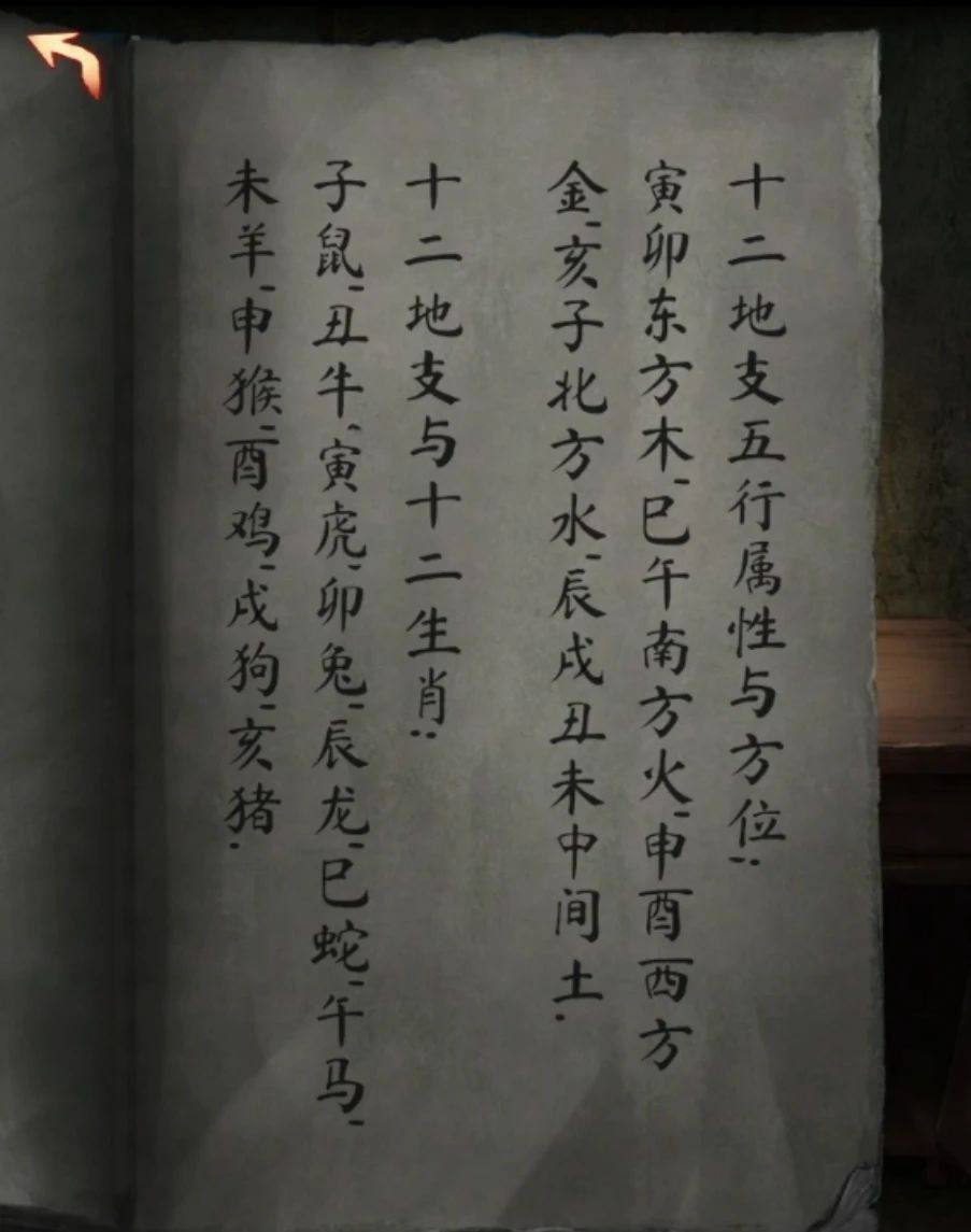 然后再推理一下上面西对应的是申酉也就是猴和鸡,右边北对应的是亥子也就是猪和鼠,下边东对应的是寅卯也就是虎和兔,左边南对应的是巳午也就是蛇和马,其他几个属相龙狗牛羊肯定就是中间的了,然后再查看一下笔记本第二页,相对应的鬼画符就能找到啦。