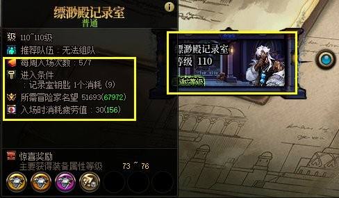 记录室副本入场名望为51693,每次入场需要消耗1把记录室钥匙 30pl,只可单人进入,每周每角色最多可以入场7次。
