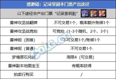 除了雾神妮以外,团本的翻牌和竞拍中也会产出记录室钥匙,地图宝玉中也有几率开出。
