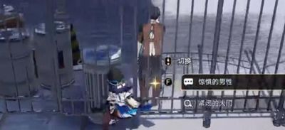 4、过一会儿,玩家回到铁门口,和那个男性说话,我们就可以完成成就了。