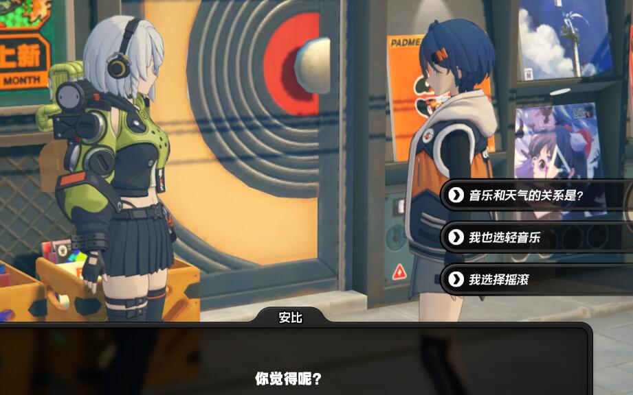 3、接着我们就要去到六分街的唱片店找到安比对话,选择,我也选轻音乐。