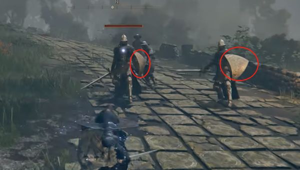 2、顺着北方向一直走,会看到一个四人巡逻队,里面有两个黄铜盾骑士。