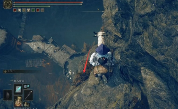 2、接着来到雾谷要塞之后,顺着城墙往下面跳,来到底部。