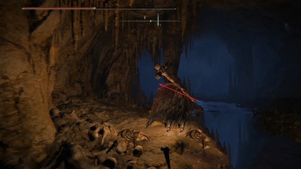 3、来到洞穴底部后一直往前走,在最深处能够看到一个楼梯。