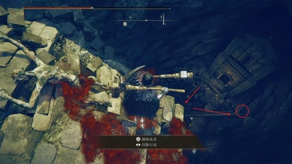 1、第一步玩家先来到达穆斯废墟的赐福点位置处,在这里直接跳下去来到最下面。
