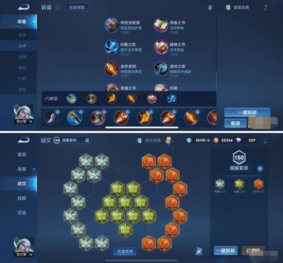 顺序:先出二技能打野刀,再出攻速鞋,之后先出电刀的小件速击之枪,再出电刀,同理做出金色圣剑,再出大吸血书(切记先出小吸血书,不然会卡钱),最后一件补法穿装,如果对面法术防御在400至500或者更少,即出日暮之流(尽量搭配攻速鞋一起用),如果对面控制较多,曜老师推荐大家出虚无法杖。此外,如果对面法伤高,最后一件就出时之预言。