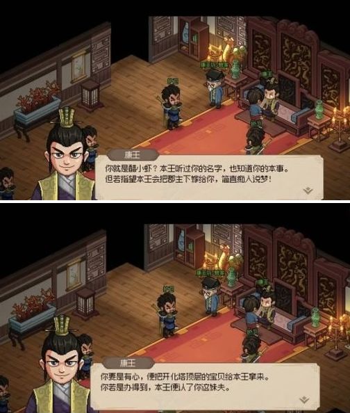 3、接着康王会要求玩家若想成亲,必须要完成开化塔得到苍生之印。