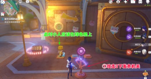 3、接着玩家需要攻击发条机关三次,并让发条小人踩在绿色格子上。