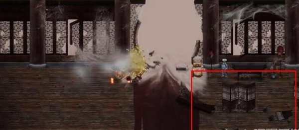 2、接着玩家到达目的地之后,需要把门口的两个金猪给消灭掉,红色方框圈住的这个的屏风也一起消灭掉。