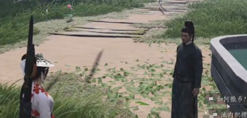 4、成功解锁撒币动作后回到功德池旁,执行撒币动作npc就会感激玩家的慷慨打赏。