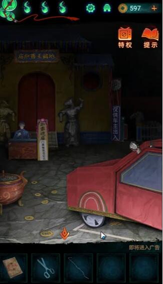 1、来到停车场位置,使用钥匙开启游戏,完成游戏会看到一辆红色车开过来,点击车主获得手串和小物件。