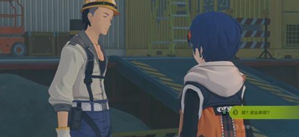 2、接着根据对话可知,玩家需要前往坑中的水泥袋旁,可以找到三门负责安全帽的人,向他借安全帽。