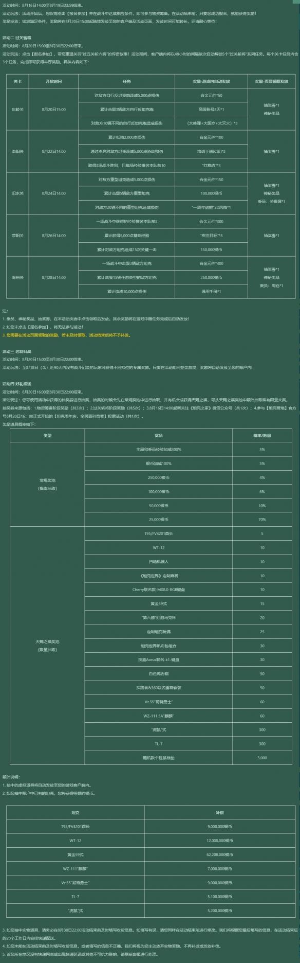 过关斩将、老将归战阶段开始时间:8月20日15:00。