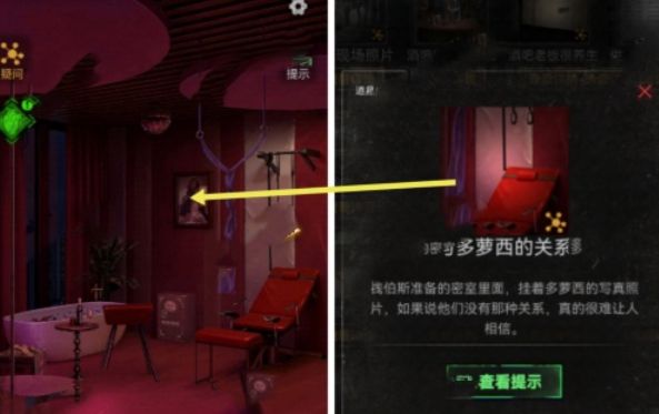 22、金融公司暗室点击墙上的写真照,获得线索与多萝西的关系。