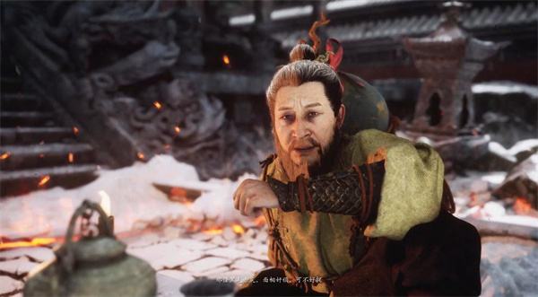 左侧的资源采集好后,我们沿着右侧上坡的路走上去,可以看到一座寺庙,在这里面有赤尻马猴二阶段等着我们,而且还有给我们葫芦进行附魔的道长,在我们打败赤尻马猴二阶段后,道长会交给我们新的法术-安身术。