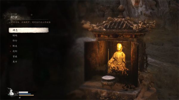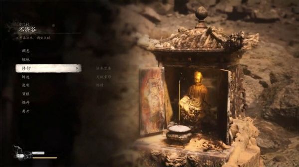 清理掉这场boss战后,可以跟旁边的佛龛(不济谷)互动,保存一下,沿着祠堂旁边的洞口继续深入,