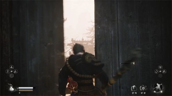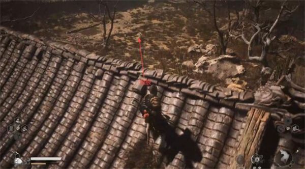 该场景远程怪巨多,且玩家除了棍花可以将远程攻击打落外,没有任何手段可以反制,所以建议先冲进沙门村门口的屋檐下,躲避箭矢的攻击。