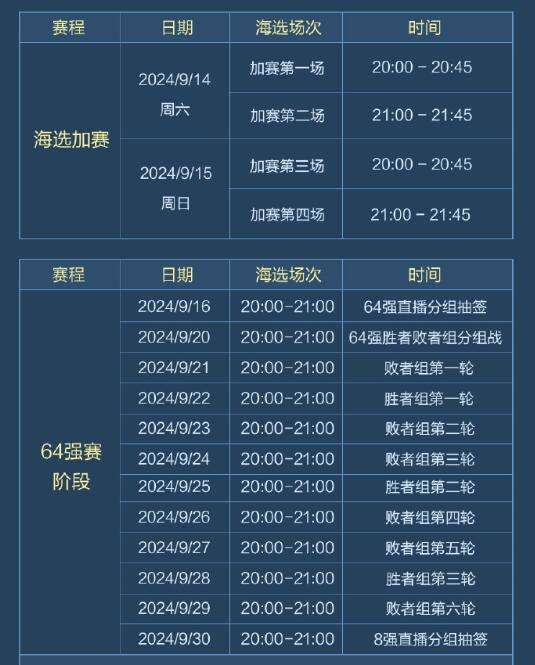 答:练习赛:8月22日开启、海选赛:9月10日开启