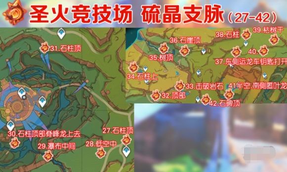 2、圣火竞技场-硫晶支脉:该区域共计有15个火神瞳,大部分分布在东北方向。