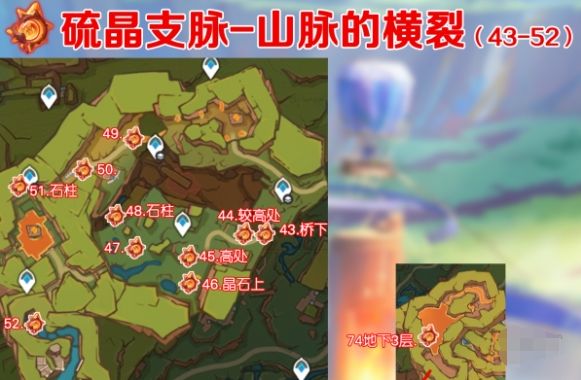 3、硫晶支脉-山脉的横裂:共计有10个火神瞳,大部分分布在悬崖的高处。