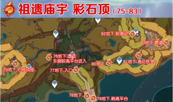5、祖遗庙宇-彩石顶:该区域共计有9个火神瞳,这些神瞳都分布在地下。