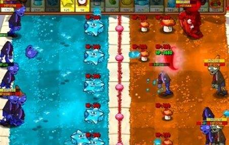 先在右侧种植两个辣椒菇,在左侧种植两个寒冰星星。